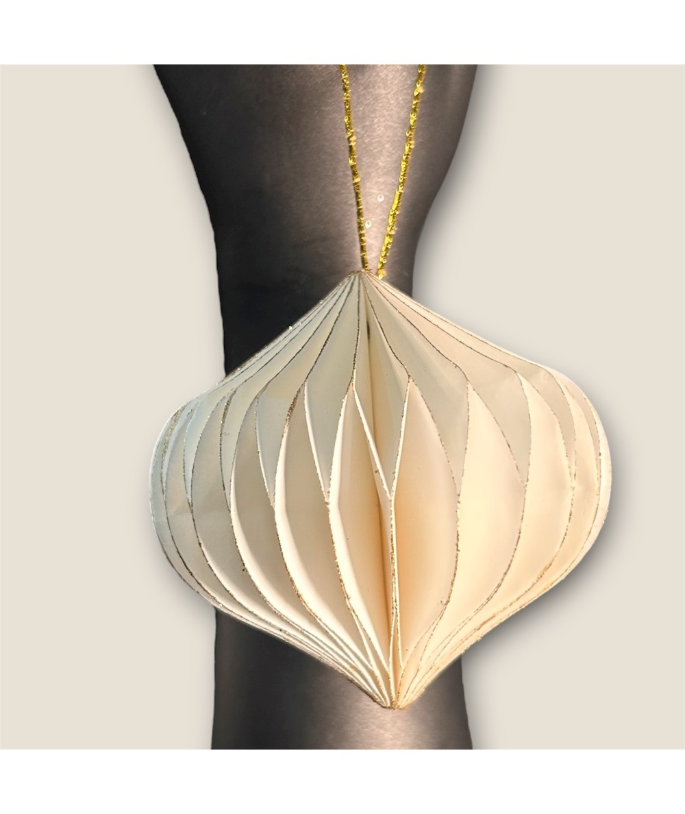 Añade u toque de elegancia minimalista a tu decoración. Este adorno de papel tipo "nido de abeja", en un delicado tono crema y con bordes dorados, es pura tendencia.