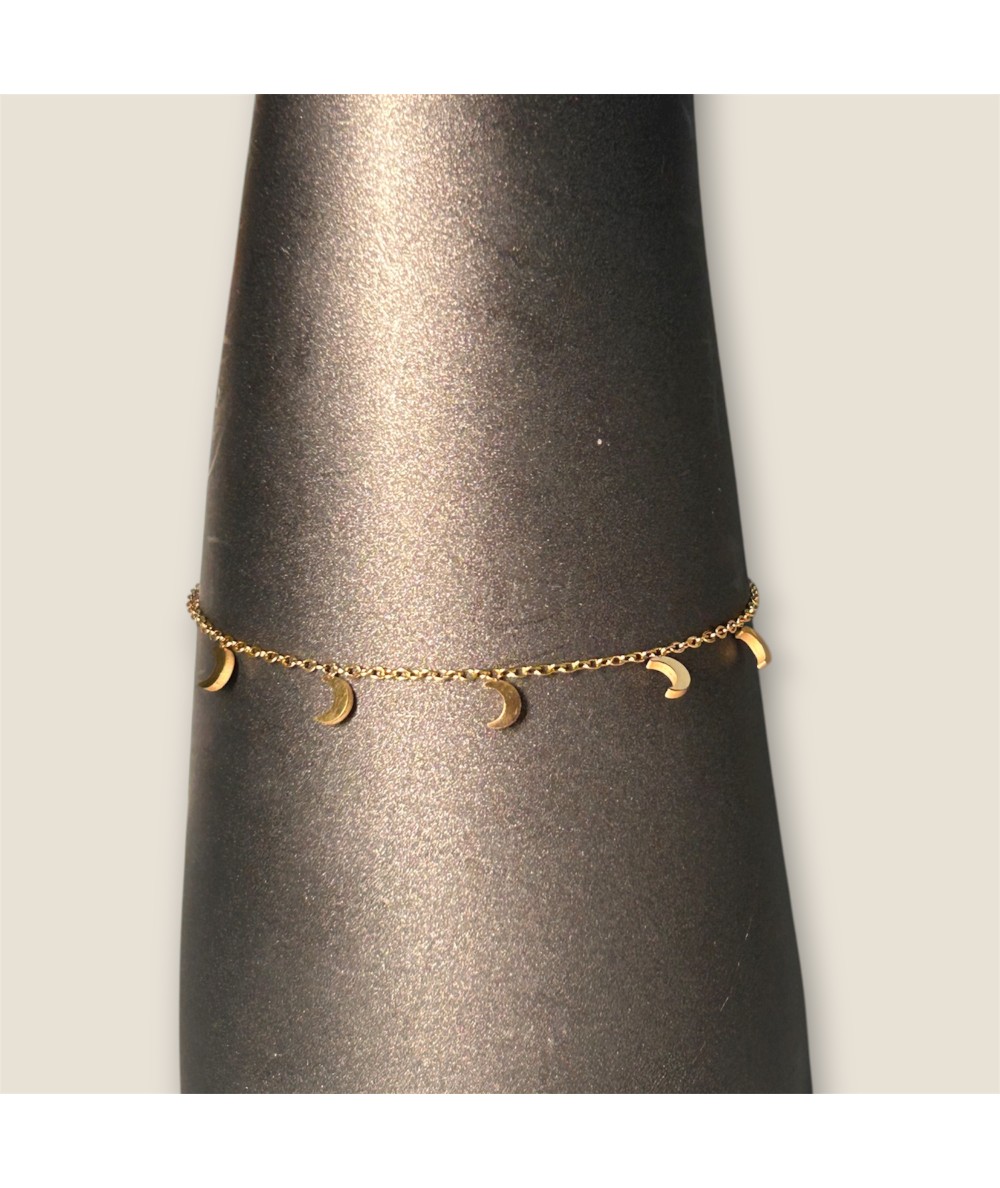 Descubre la belleza sencilla nuestra pulsera con pequeños colgantes de luna. Es el accesorio perfecto para añadir un toque de elegancia y misterio a cualquier conjunto.