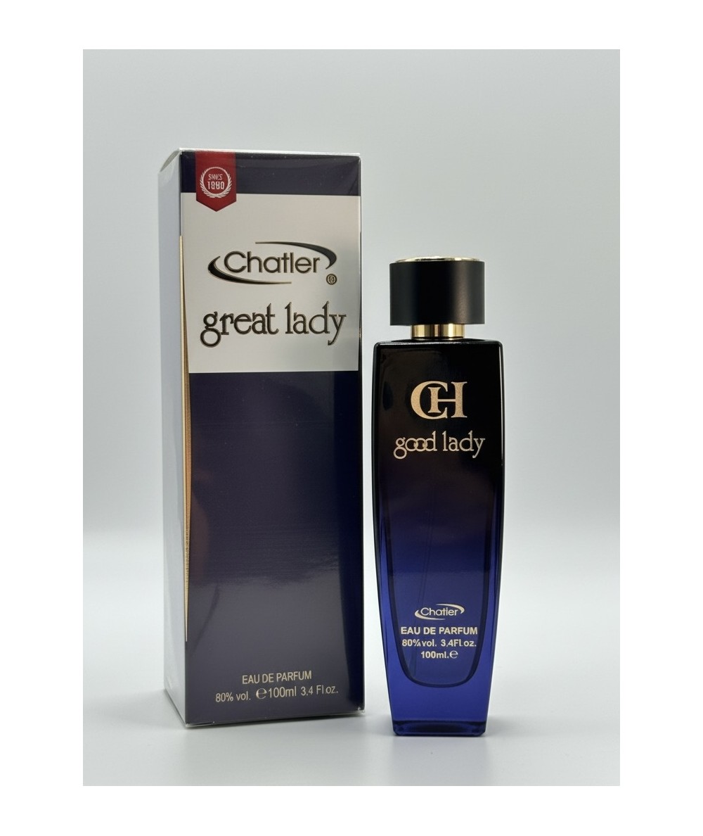 Descubre el poder de la feminidad moderna con Great Lady. Inspirado en el icónico Good Girl, este perfume es un arma de seducción masiva. Combina la energía vibrante de la almendra y el café con un corazón floral de nardo y jazmín, cerrando con un fondo adictivo de cacao y haba tonka.