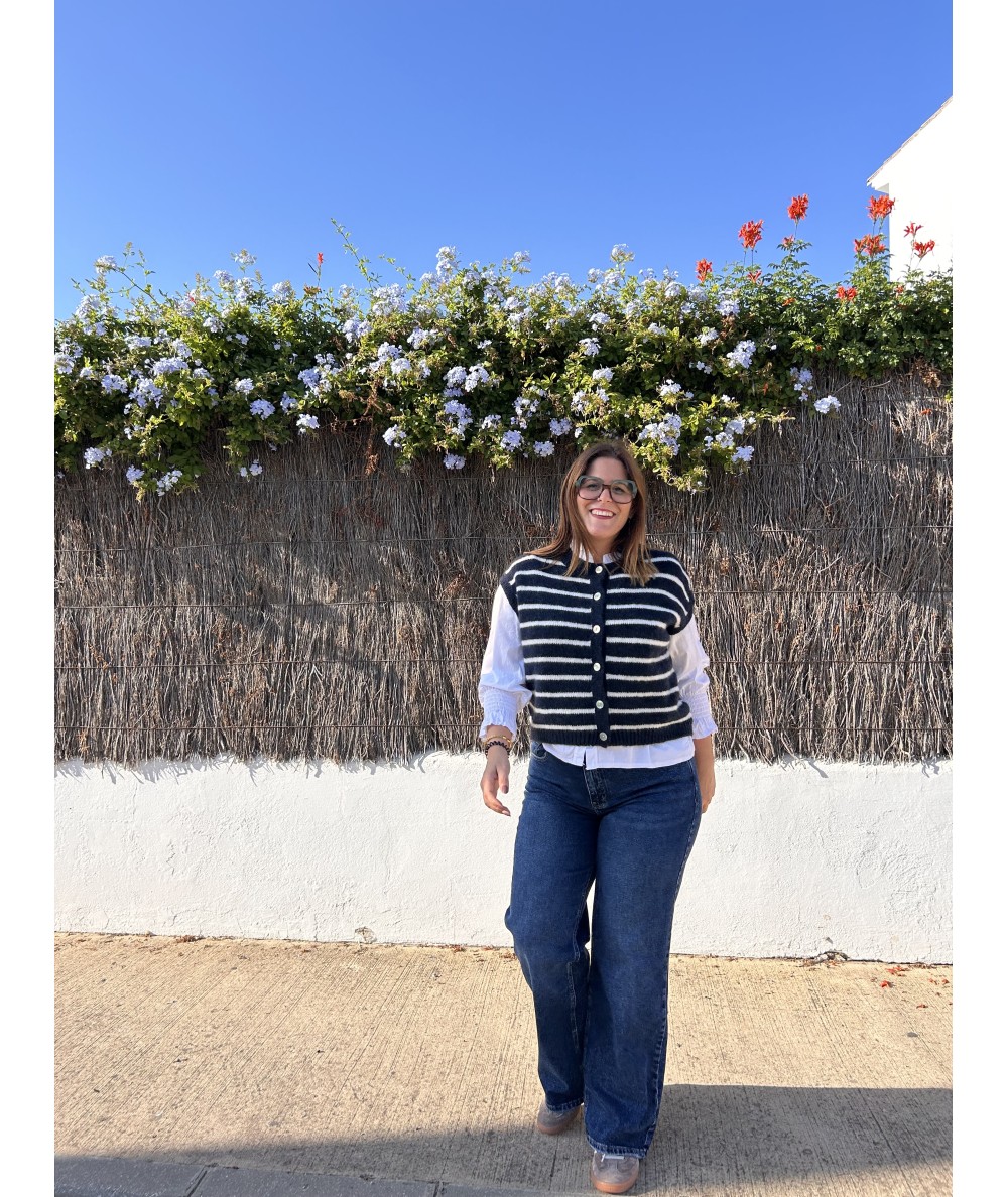 Chaleco negro de rallas horizontales. Un chaleco de lana perfecto para este invierno.