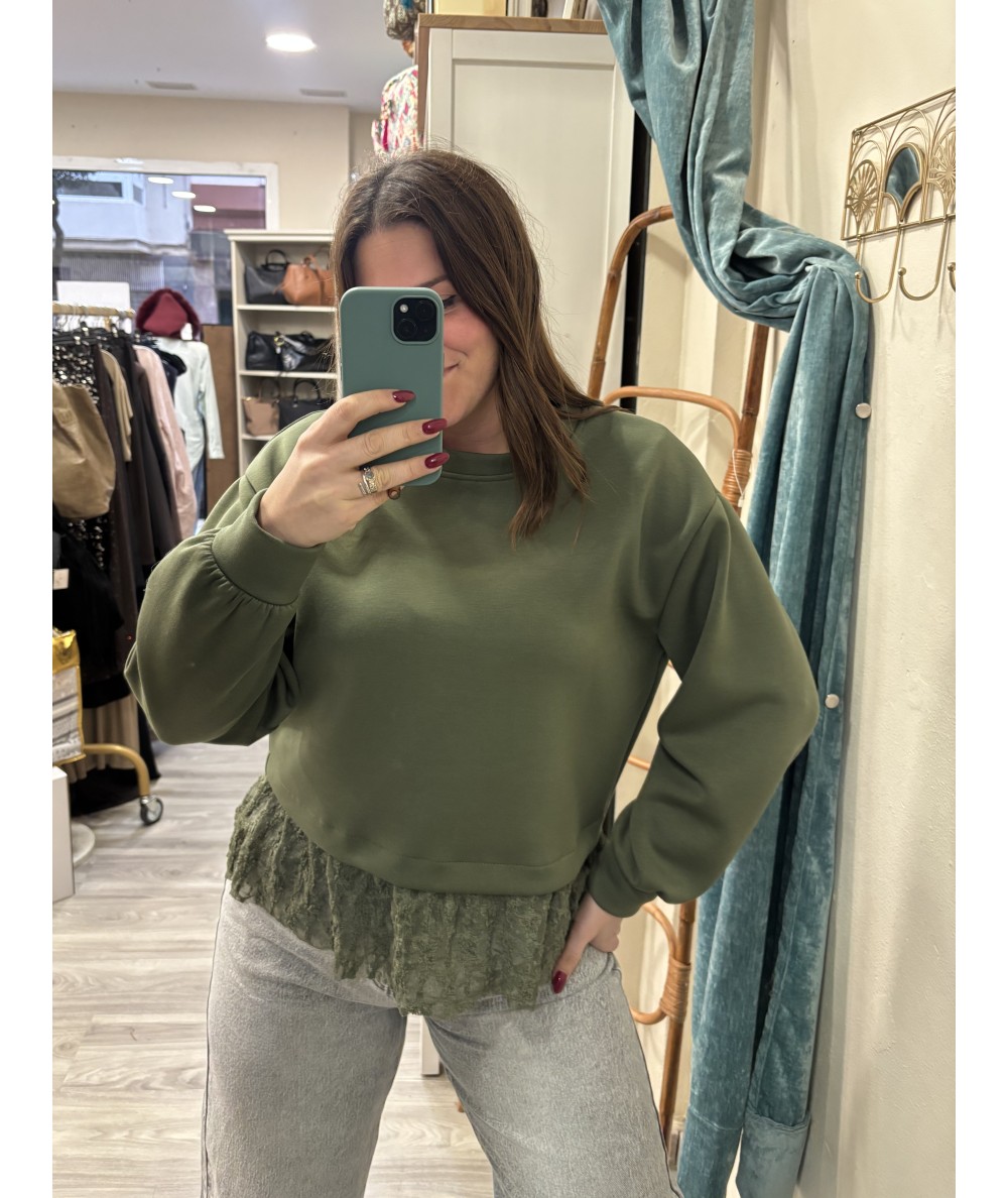 Sudadera tela de capa de aire con un encaje al filo precioso